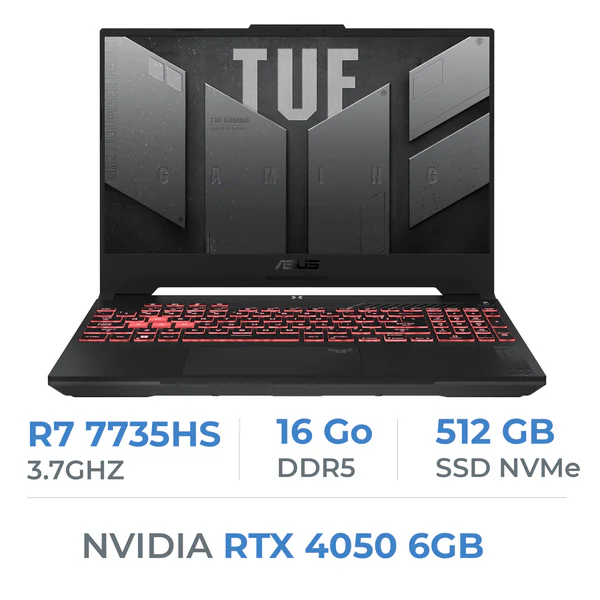 Le SSD de 512 Go du ASUS TUF A15 TUF507NU. Offre une grande capacité de stockage et des vitesses de lecture/écriture rapides pour un chargement rapide de jeux. D’applications et de fichiers multimédias.