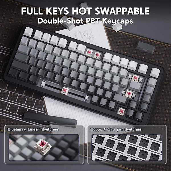 Clavier Gaming ATTACK SHARK M86 – Sans Fil Tri-Mode 75 %, Blueberry Switch