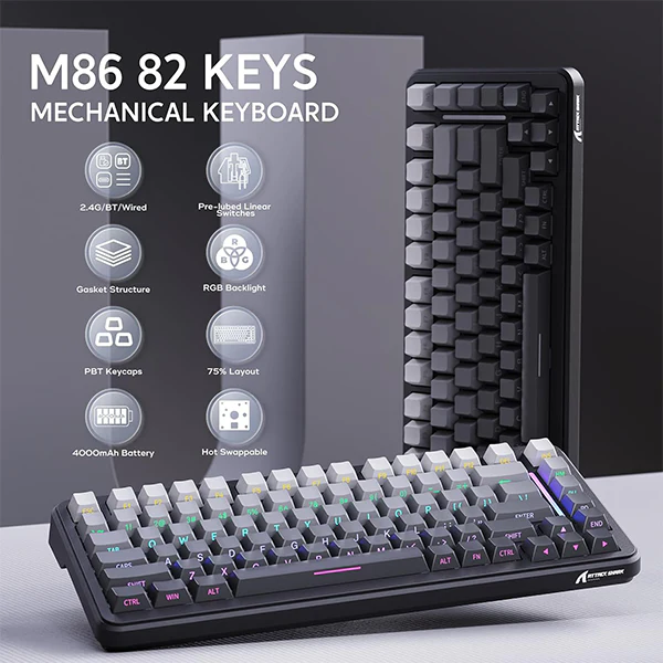 Le clavier ATTACK SHARK M86 est un clavier mécanique compact et performant, parfait pour le gaming et le travail professionnel. De plus, il combine ergonomie, personnalisation et connectivité multi-appareils, offrant ainsi une expérience fluide et agréable.