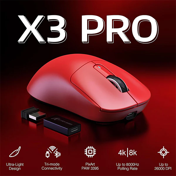 Souris Gaming ATTACK SHARK X3 (Red) – Ultra Légère 49g