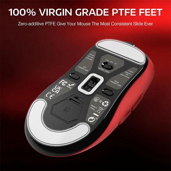 Les pieds 100 % PTFE offrent une surface de contact plus stable, un suivi impeccable et une puissance de freinage améliorée. Cela garantit un glissement précis et fluide sur toutes les surfaces de jeu.