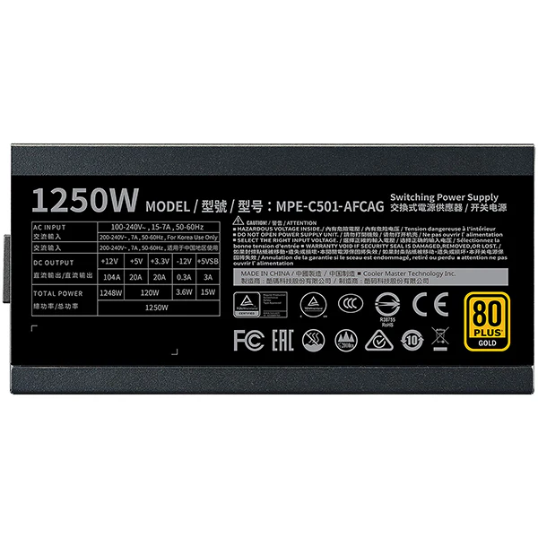 Cooler Master MWE Gold 1250 Full Modular V2 ATX 3.1 80PLUS GOLD 1250W