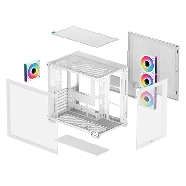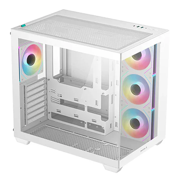 L’un des premiers éléments qui attire l’attention sur le DeepCool CG530 4F White est son design élégant. Le boîtier adopte un style moderne avec des panneaux en verre trempé à l’avant et sur le côté, permettant de mettre en valeur les composants internes de votre configuration.