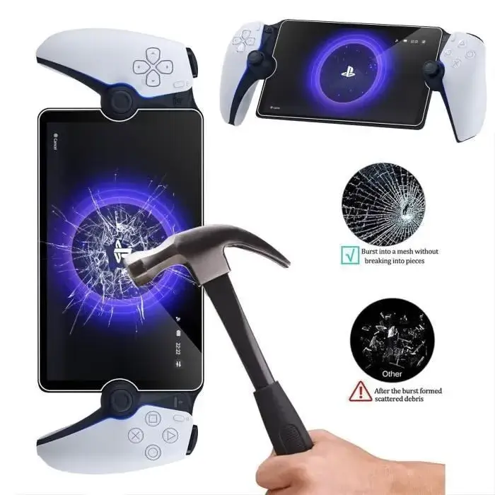 Le verre trempé Playstation Portal s’installe rapidement et sans bulles d’air grâce à son adhésif avancé. Qui garantit une adhérence solide sans résidus collants lors du retrait. Les bords biseautés du verre trempé ajoutent de l’élégance. Ainsi tout en réduisant le risque de dommages causés par des chocs latéraux.