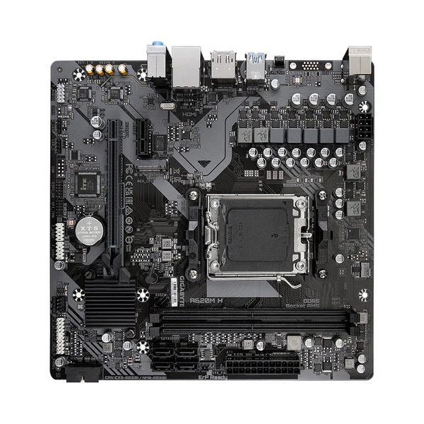 La Gigabyte A620M H est une carte mère Micro-ATX fiable et abordable, idéale pour monter un PC AMD Ryzen moderne tout en maîtrisant le budget. Grâce à son socket AM5, elle prend en charge les processeurs AMD Ryzen série 7000, offrant ainsi de bonnes performances pour le travail, le multimédia et le gaming léger.