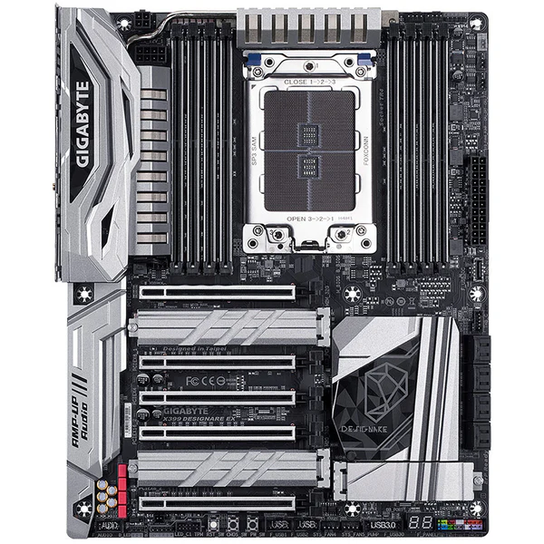 La Gigabyte X399 DESIGNARE EX est une carte mère haut de gamme conçue pour les utilisateurs les plus exigeants. Développée autour de quatre piliers essentiels – Performance, Gaming, Esthétisme et Durabilité, elle constitue une base idéale pour assembler une station de travail ou un PC extrême destiné aux charges lourdes.
