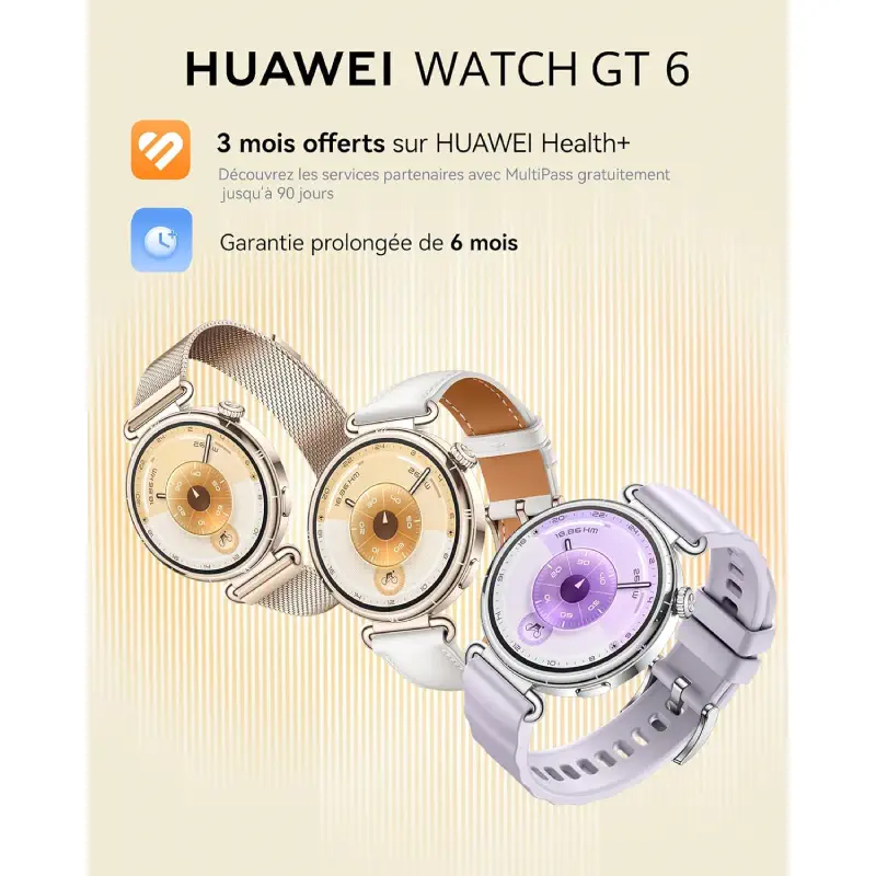 Polyvalente, la Huawei Watch GT 6 s’adresse aussi bien aux sportifs qu’aux utilisateurs recherchant une montre connectée complète. Elle permet de suivre les activités physiques, surveiller les performances et rester connecté en permanence.