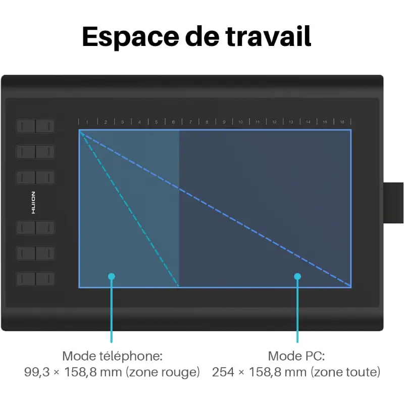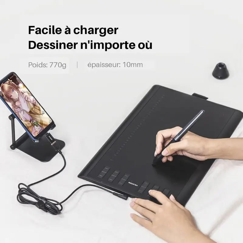 Avec une zone active de 10 x 6,25 pouces, cette tablette offre un espace suffisant pour dessiner librement, sans se sentir à l’étroit. Cela la rend idéale pour les illustrations détaillées, la retouche photo et même l’animation.