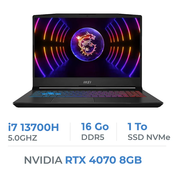 La principale composante de l’expérience visuelle de cet ordinateur portable MSI Pulse 15 B13VGK est la carte graphique NVIDIA RTX 4070 8 Go. En utilisant une accélération avancée et des performances. Ainsi elle permet aux utilisateurs de profiter jeux AAA à des cadres élevés et de produire du contenu de haute qualité.