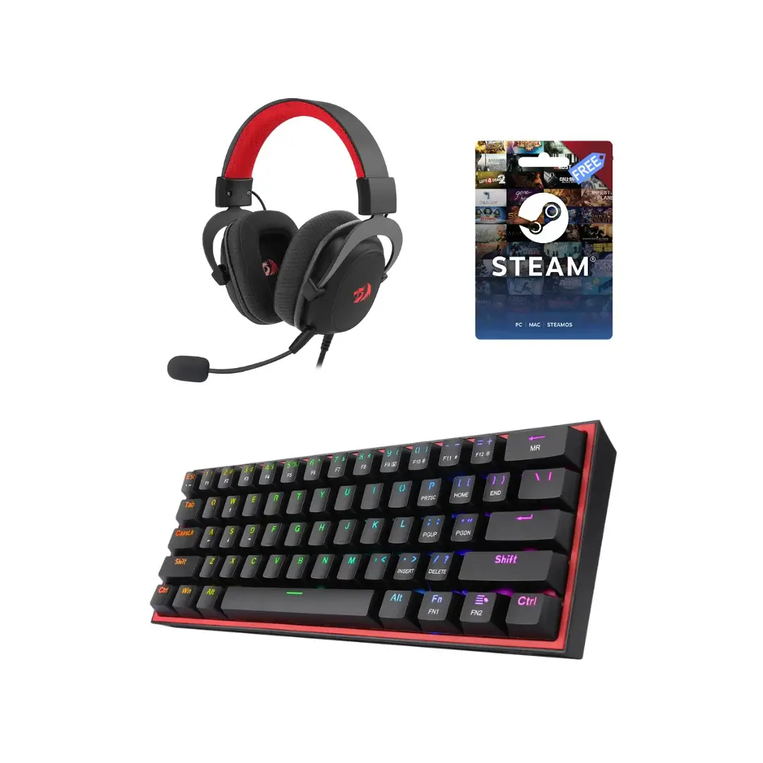 Pack Redragon H510 Lite + Redragon K617 Fizz RGB Black + Carte Steam Gift