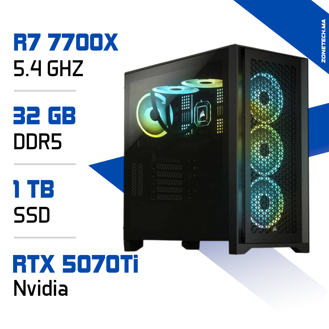 🖥️ PC Gamer R7 7700X/1TB SSD/32GB/RTX 5070Ti – Construit pour la Victoire