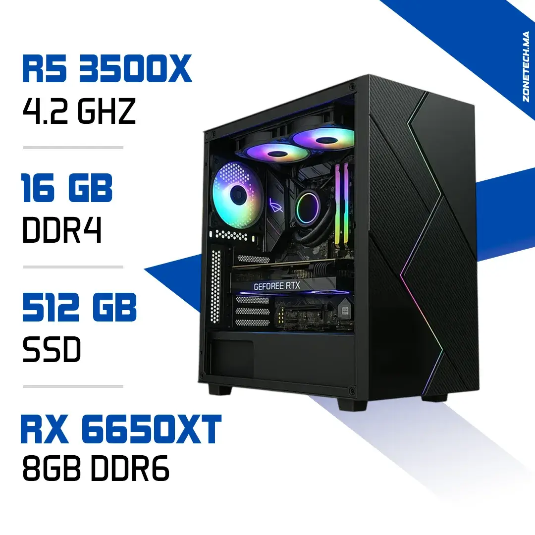 PC Gamer Zonetech Ryzen 5 3500X / 16GB / 512 Go SSD / RX 6650 XT 8GB – Puissance Gaming au Maroc
