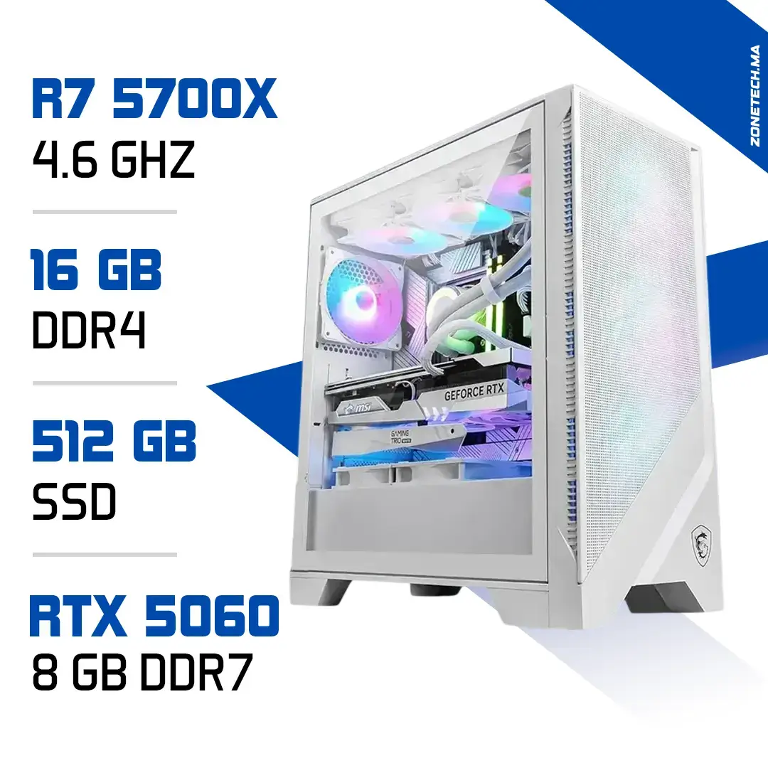 Commandez dès aujourd’hui le PC Gamer Ryzen 7 5700X / RTX 5060 / 16 Go RAM / 512 Go SSD sur Zonetech.ma.