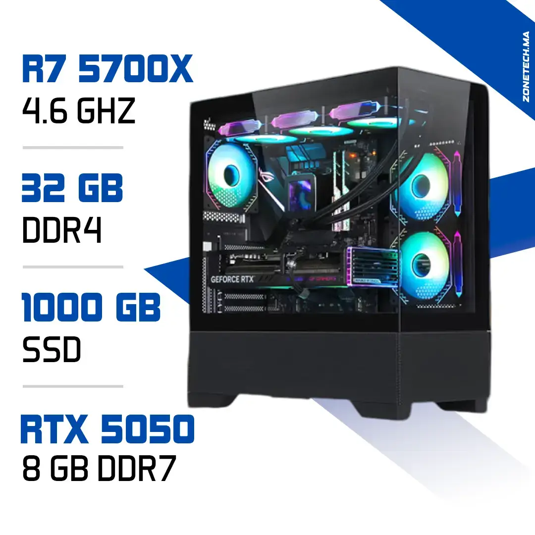 PC Gamer Ryzen 5 5700X / 1000 GB SSD / 32GB / RTX 5050 8G – Puissance Gaming 1080p & 2K au Maroc