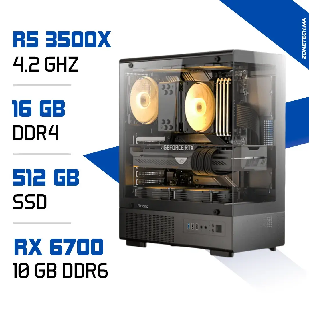 PC Gamer Zonetech Ryzen 5 3500X / 16GB RAM / 512GB SSD / RX 6700 10GB – Gaming Haute Performance au Maroc