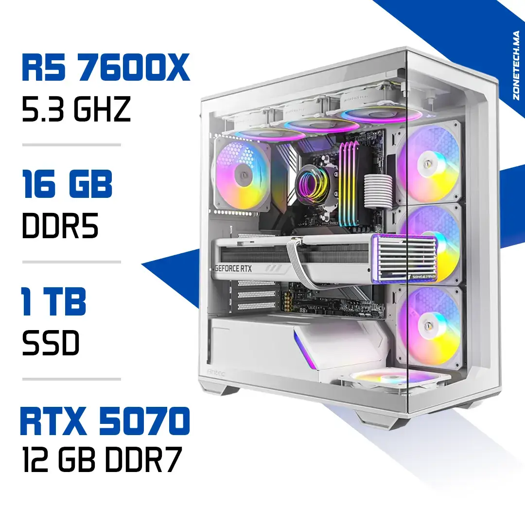 PC Gamer Zonetech Ryzen 5 7600X / 16GB RAM / 1000 GB SSD / RTX 5070 12GB