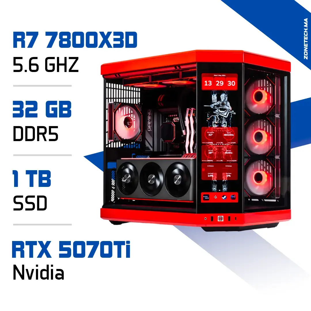 Le PC Pro Zonetech Ryzen 7 7800X3D cible les joueurs et professionnels au Maroc qui veulent une machine rapide, stable et durable. Cette configuration combine un processeur optimisé pour le jeu, une carte graphique puissante et des composants fiables.