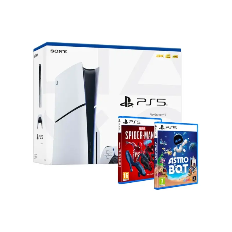PS5 Slim Standard + Marvel’s Spider-Man 2 + Astro Bot – Pack avec jeux en CD physiques au Maroc