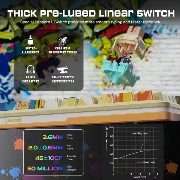 Grâce à ses switches mécaniques de haute qualité, le clavier assure une frappe rapide et précise. Chaque touche est optimisée pour réduire le délai de réponse, offrant ainsi un avantage compétitif dans vos parties en ligne.
