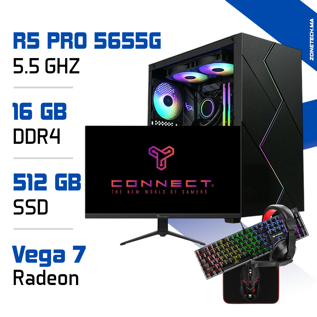 Vous cherchez un setup complet performant et abordable au Maroc ? Le Ryzen 5 PRO 5655G avec Vega 7 est une solution idéale pour le gaming léger, la bureautique avancée ou les tâches multimédia. Ce pack inclut tout ce qu’il faut : PC prêt à l’emploi, écran 180Hz, clavier, souris, casque et tapis de souris !