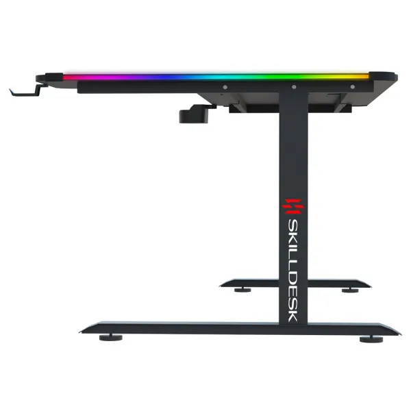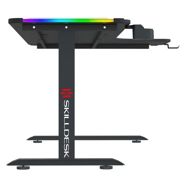Le SKILLDESK COCKPIT 160 est équipé de patins en nylon anti-pression pour protéger le sol et améliorer l’adhérence. Son éclairage RGB 256 couleurs, contrôlé par une télécommande indépendante, crée une ambiance gaming moderne et personnalisable.