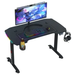 La structure en acier renforcé assure une excellente solidité. En effet, les tubes robustes et les pieds de 600 mm garantissent une bonne stabilité. Le bureau peut supporter jusqu’à 60 kg de charge. Il peut donc accueillir facilement un setup gaming complet.