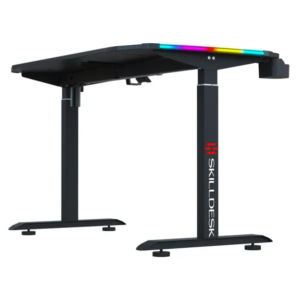 Le SKILLDESK FALCON (Motorisé) est un bureau gaming réglable en hauteur conçu pour offrir confort et ergonomie. Il convient aussi bien aux gamers qu’aux professionnels. Grâce à son système électrique, vous pouvez passer facilement de la position assise à la position debout.