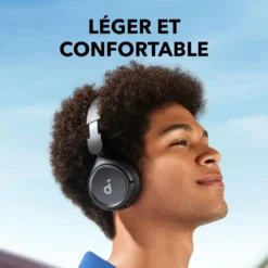 Le Soundcore H30i est pensé pour être utilisé longtemps sans gêne. Son design supra-auriculaire (il repose sur les oreilles sans les englober totalement) permet de l’avoir sur la tête pendant plusieurs heures sans ressentir de douleur. Il pèse seulement 183 g, ce qui le rend ultra léger, parfait pour l’emporter partout avec vous.